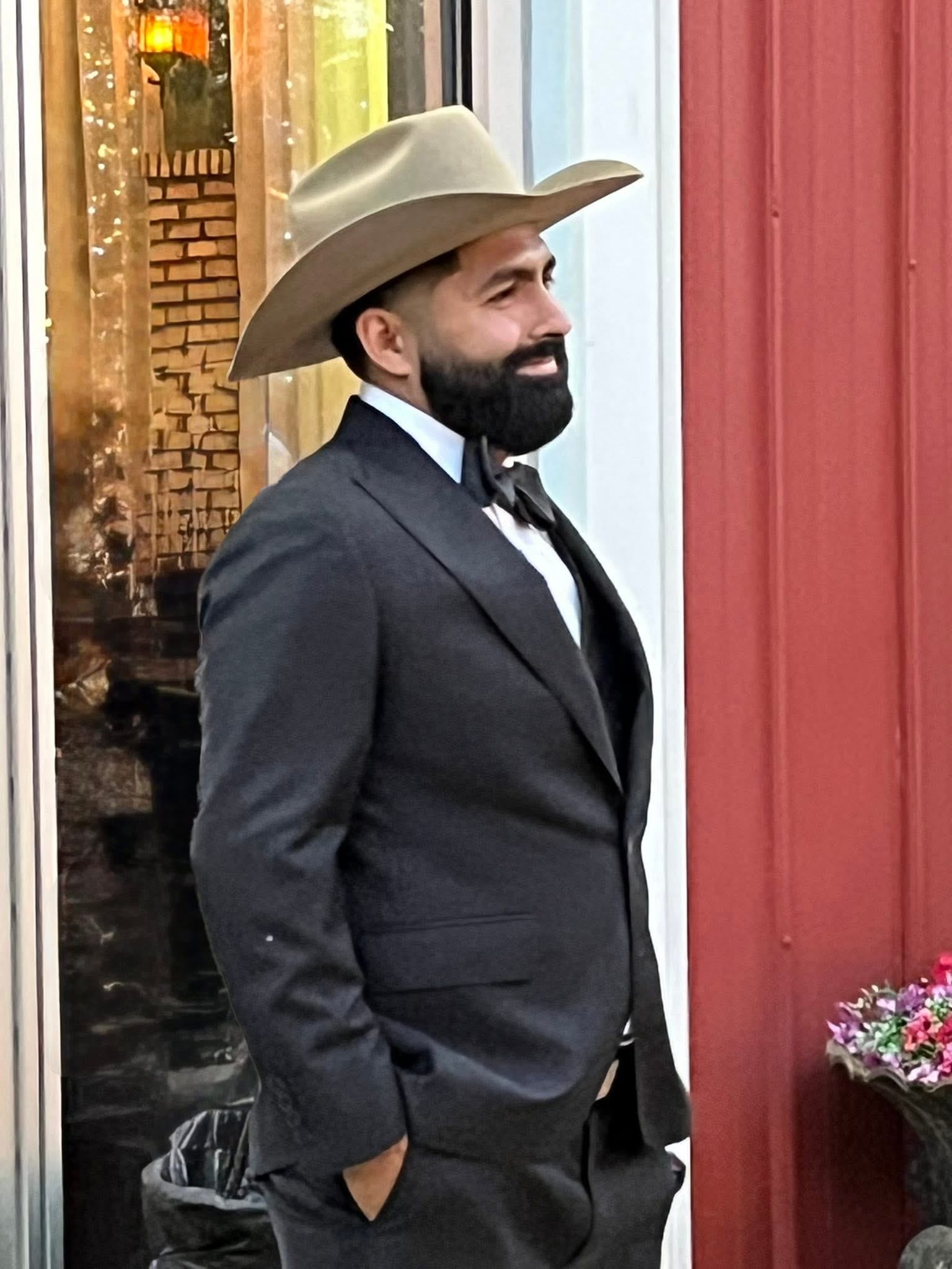 Michael wanted his outfit to reflect both his personality and the character of the celebration. The challenge was balancing traditional Western elements with modern tailoring, ensuring the final look felt intentional rather than costume-like.